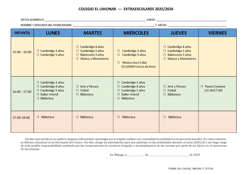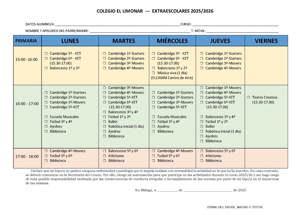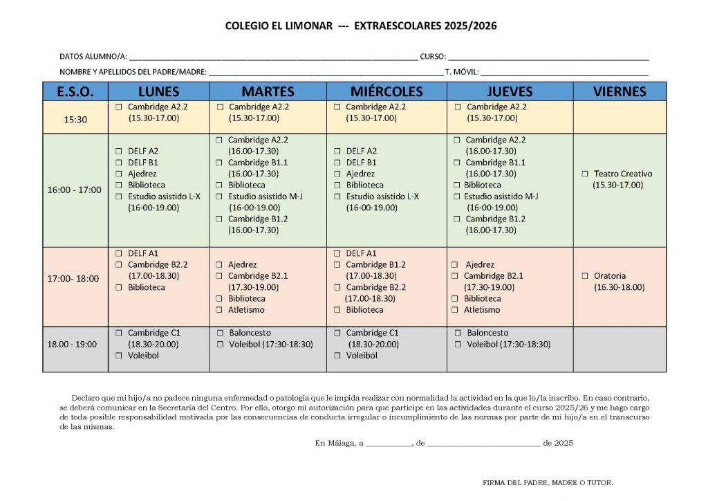 La lista de actividades extraescolares con sus precios puede visualizarse a continuación: