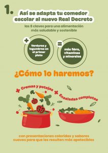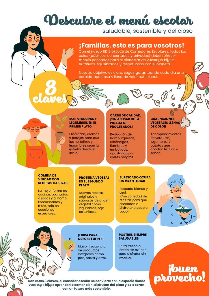 Os informamos que a partir del 1 de abril del presente año se va aplicar el Real Decreto 315/2025, de 15 de abril, por el que se establecen normas de desarrollo de la Ley 17/2011, de 5 de julio, de seguridad alimentaria y nutrición, para el fomento de una alimentación saludable y sostenible en Centros Educativos.